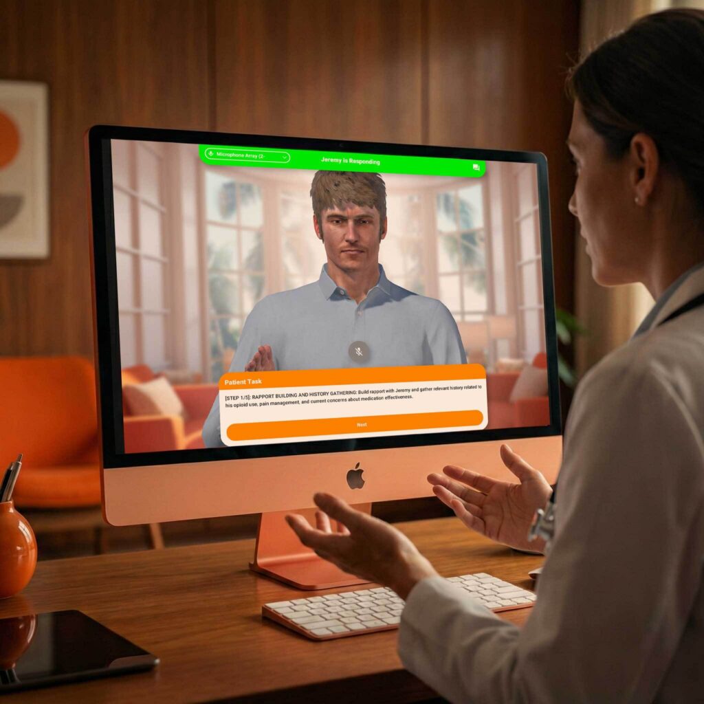 Simulated dialogue training on opioid prescribing and patient risk awareness